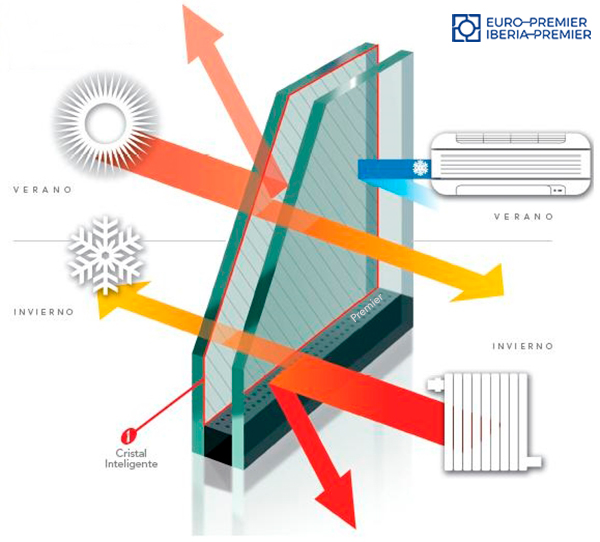 Las ventanas con doble y triple acristalamiento PREMIER incorporan dos o más vidrios de alta calidad separados entre sí por una cámara sellada de aire o de gas argón, lo cual genera un importante aislamiento térmico. La utilización de un buen acristalamiento mejora   notablemente la eficiencia energética de una ventana.