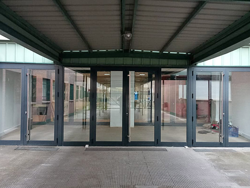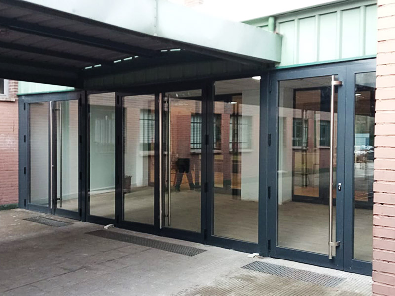 Este sistema de puerta peatonal está indicado principalmente para edificios y locales comerciales. Se caracteriza por contar con líneas rectas con 80 mm de profundidad y rotura de puente térmico de 34 mm.